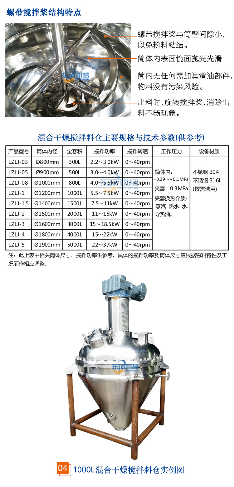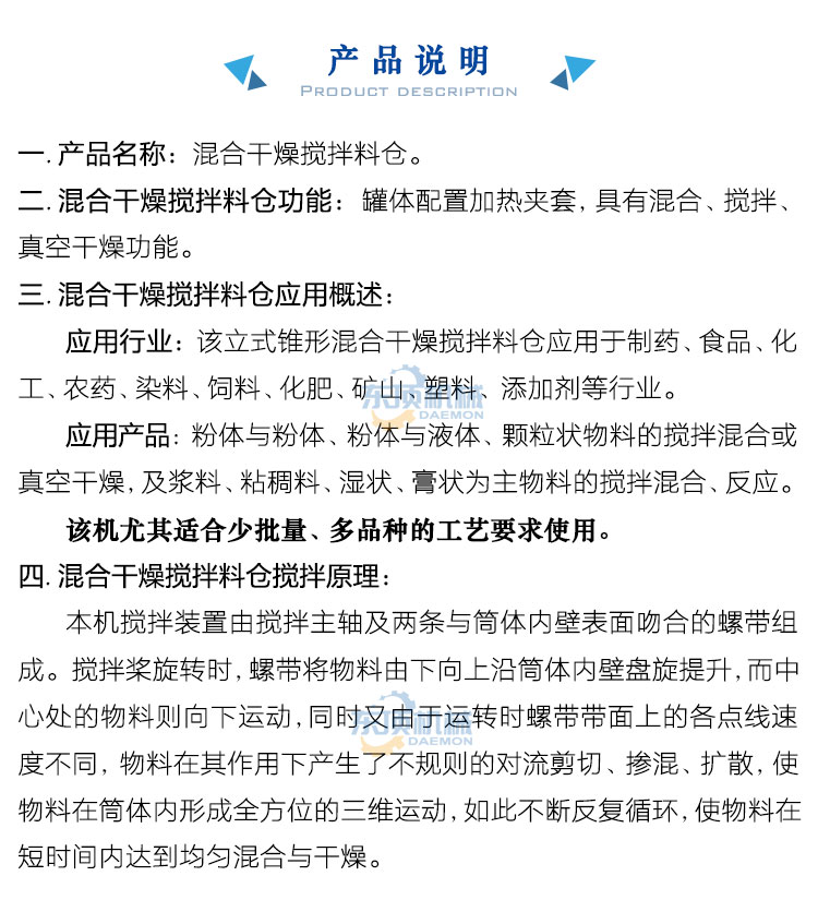 一.混合干燥搅拌料仓功能:罐体配置加热夹套、保温层,具有混合、搅拌、真空干燥功能。