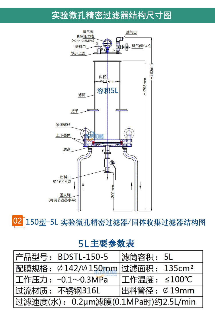 ●可适配不同孔径滤材,如:圆形滤膜(0.2~10μm)、滤布(10~400目)、不锈钢滤盘(名义过滤孔径2~50μm)过滤。